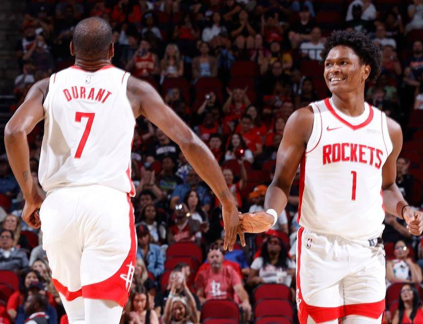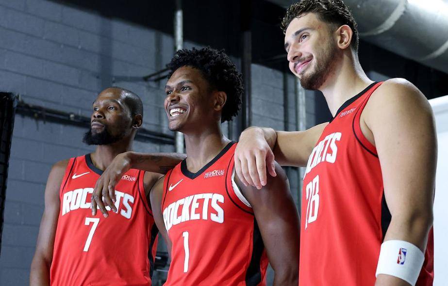 在火箭队,杜兰特的“三巨头”队友是中锋申京和侧翼阿门-汤普森。申京是一位技术精湛的传球手,具备约基奇式的风格。上赛季,他首次入选全明星,并在今年夏天赢得了欧洲杯银牌。阿门-汤普森则是一位防守悍将,在今年秋天被NBA总经理们评为最有可能迎来爆发赛季的球员。