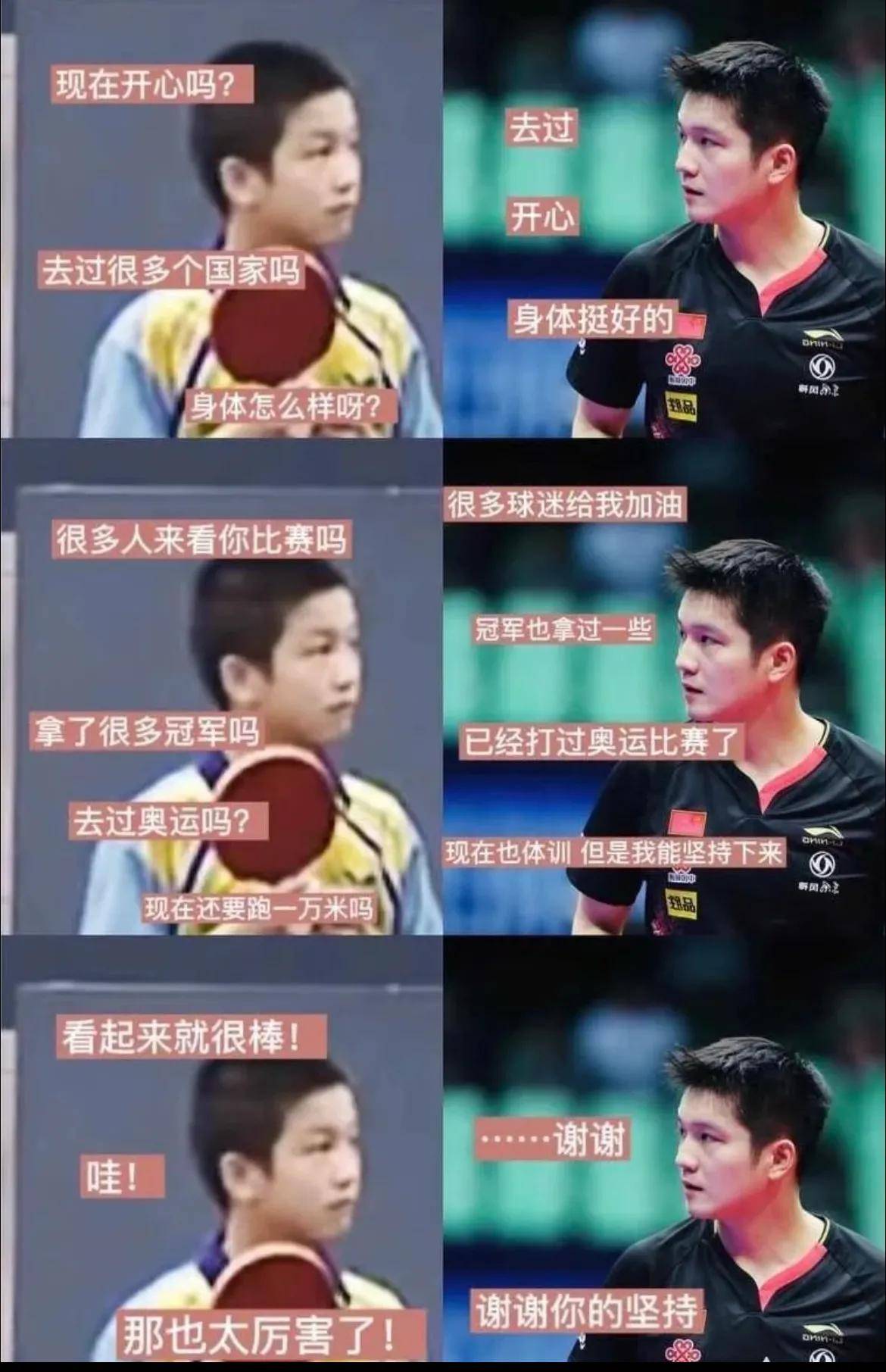 16岁时,樊振东就已经在全运会上闯进了男单决赛,至今已参加四届全运会并赢得了2金2银的佳绩。樊振东的感人名言“你们都看到了我拿到冠军,但那些亚军,我也都拿过!”体现了他对比赛的敬畏与坚持。